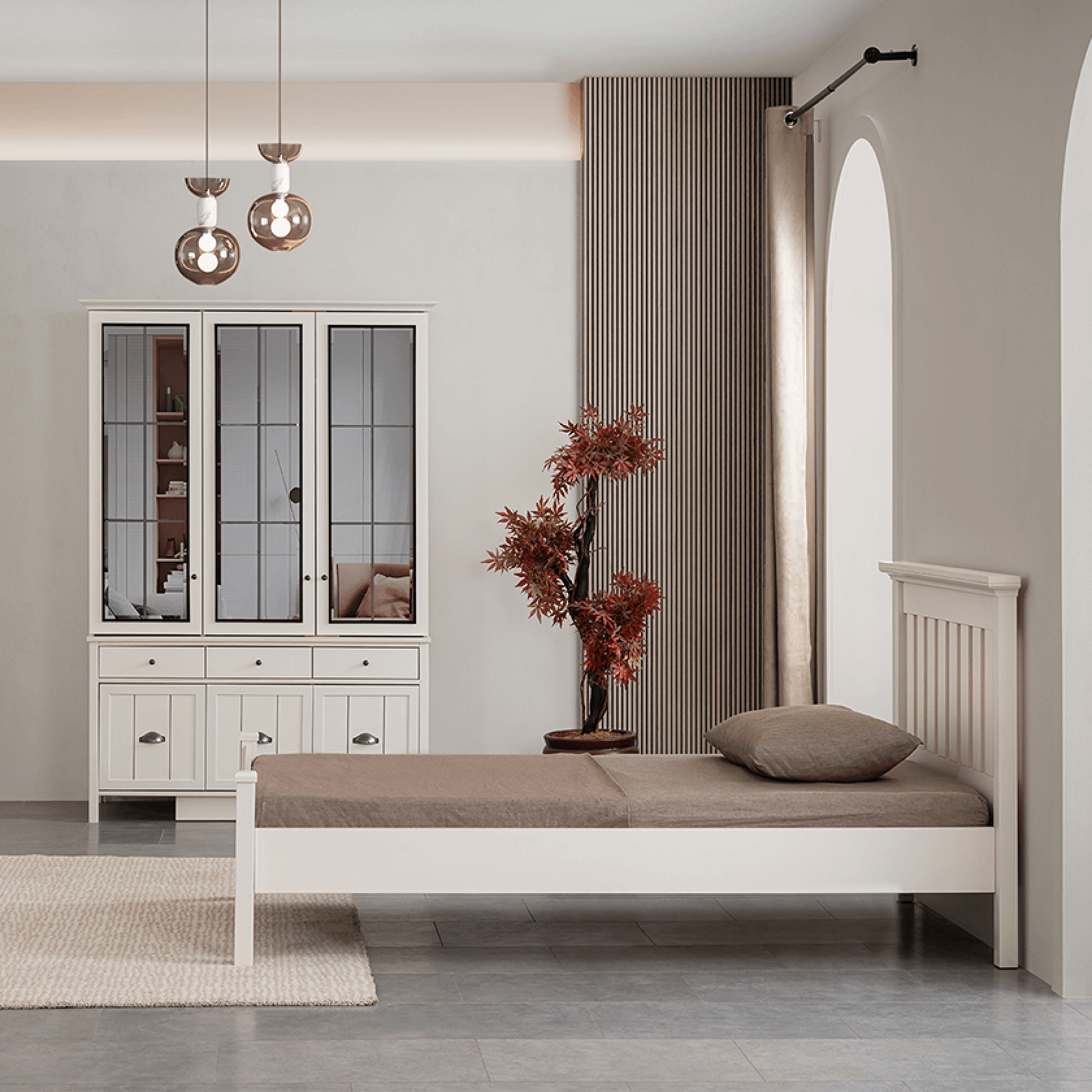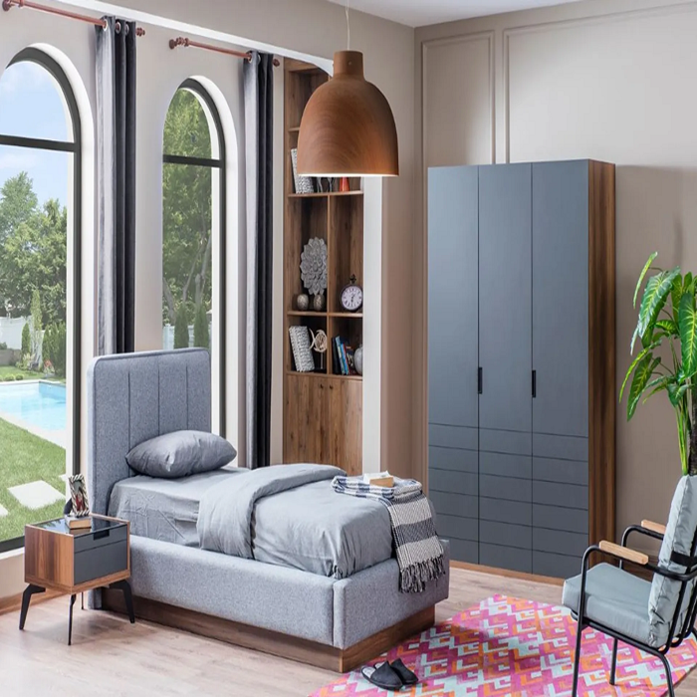 Takım İçeriği1 adet Gardırop, 1 adet Karyola, 1 adet Şifonyer+ aynası ve 2 adet Komodinden oluşmaktadır.Karyola Sunta lam malzemeden üretilmiştir..